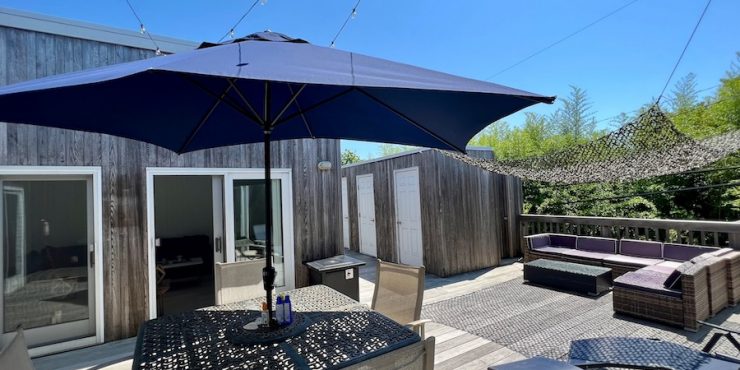 The large outdoor shower is the cherry on top after a long day at the beach. In addition to an outdoor shower, the deck has a gas grill, a large dining table and a nice lounge area.
