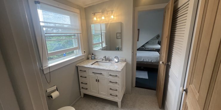 This classic Fire Island home sits on the ocean side and has everything you need for a relaxed beach stay. There are four bedrooms, one full bathroom, and two half baths. The bedrooms have air conditioning, but the living area does not.