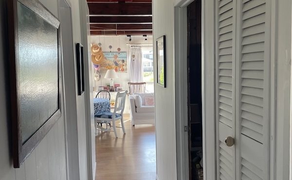 The home features three bedrooms and one and a half baths and is thoughtfully laid out for easy, comfortable use. The main living area is air conditioned, while the bedrooms stay comfortable with ceiling fans and a consistent ocean breeze.