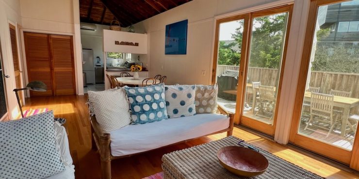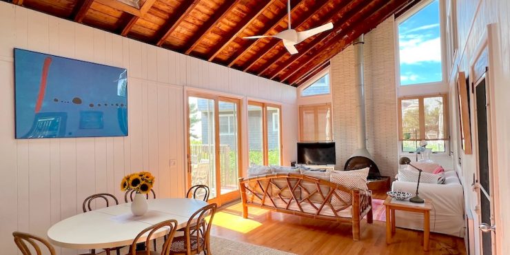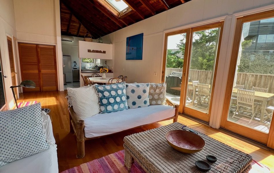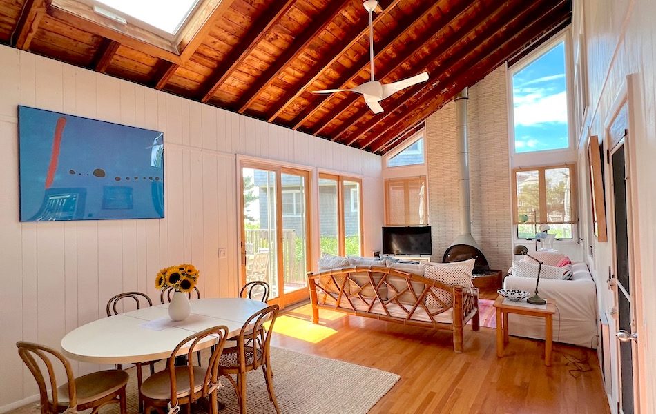 This delightful beach house is steps to the ocean on a quiet walk in Fair Harbor. With soaring ceilings and an abundance of windows, your bright and airy living space is filled with natural light, even on overcast days.